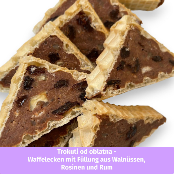 Trokuti od oblatna - Waffelecken mit Füllung aus Walnüssen, Rosinen und Rum